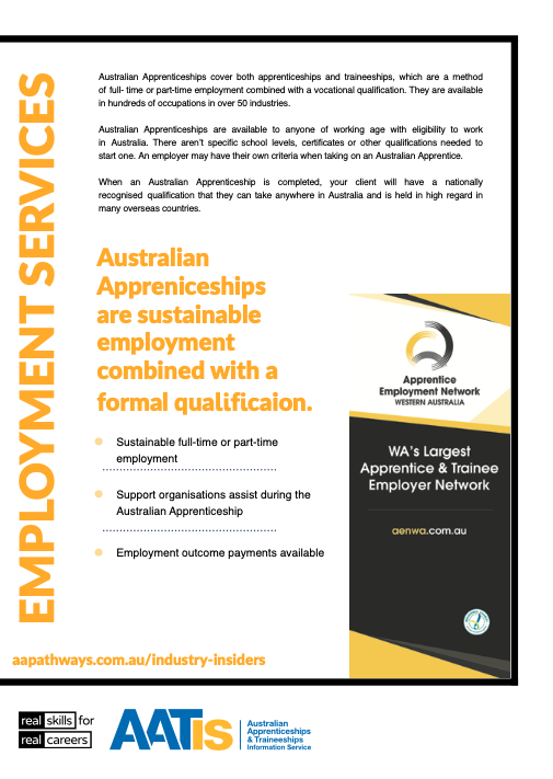 To find out more about the employment services they offer and the benefits of undertaking an Apprenticeship or Traineeship with them, visit the Jobseeker and Employer menus on this website.